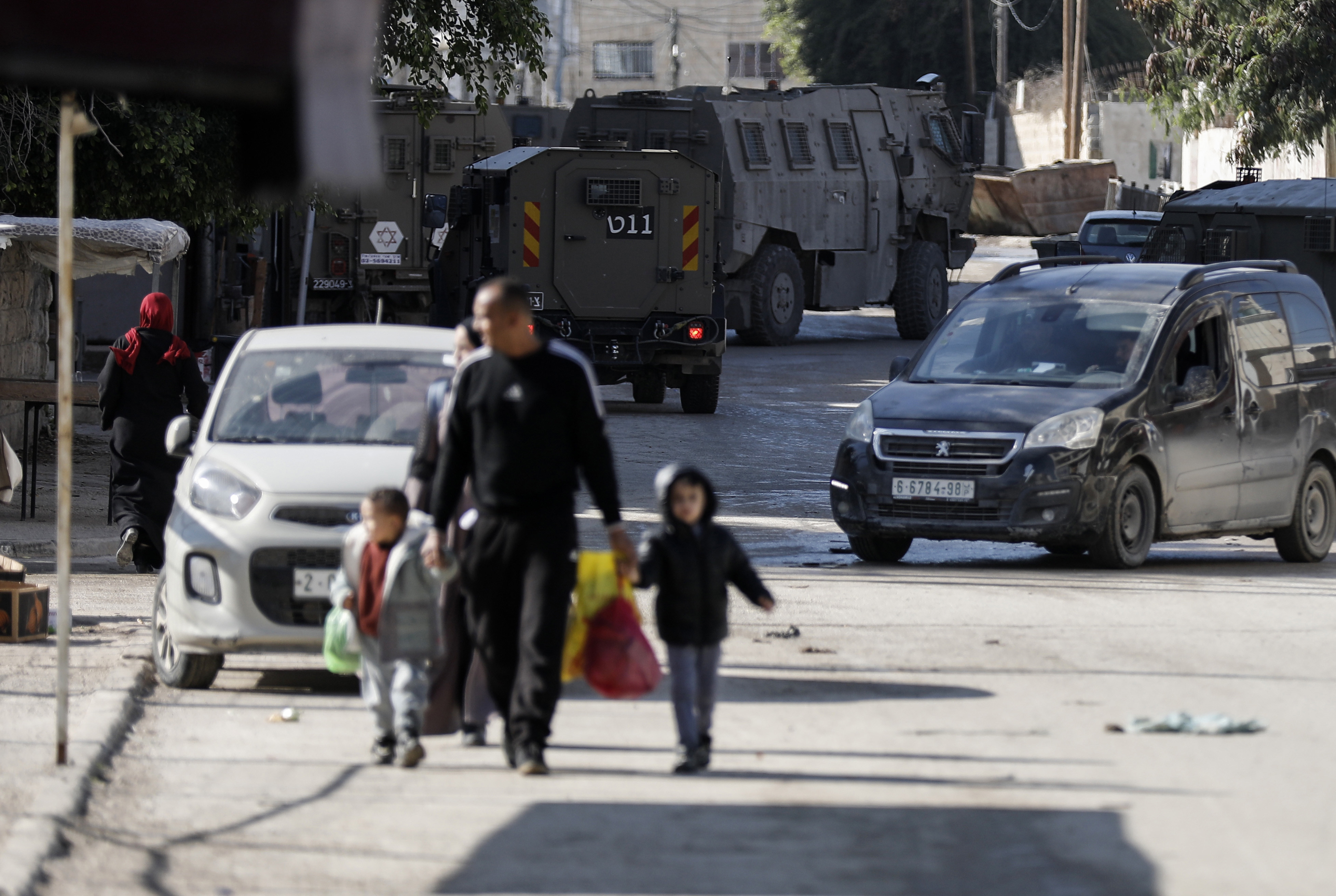 1月21日,在约旦河西岸城市杰宁,以色列军用车辆在街头巡逻。新华社发(艾曼·诺巴尼 摄)联合国2月13日发布报告说,由于以军持续袭击,位于杰宁、图勒凯尔姆和图巴斯的共计4个难民营及其周边地区,已有超过4万名巴勒斯坦人流离失所。其中,杰宁难民营里几乎已空无一人。许多流离失所者被迫租房,高昂的租金让他们的生活雪上加霜。